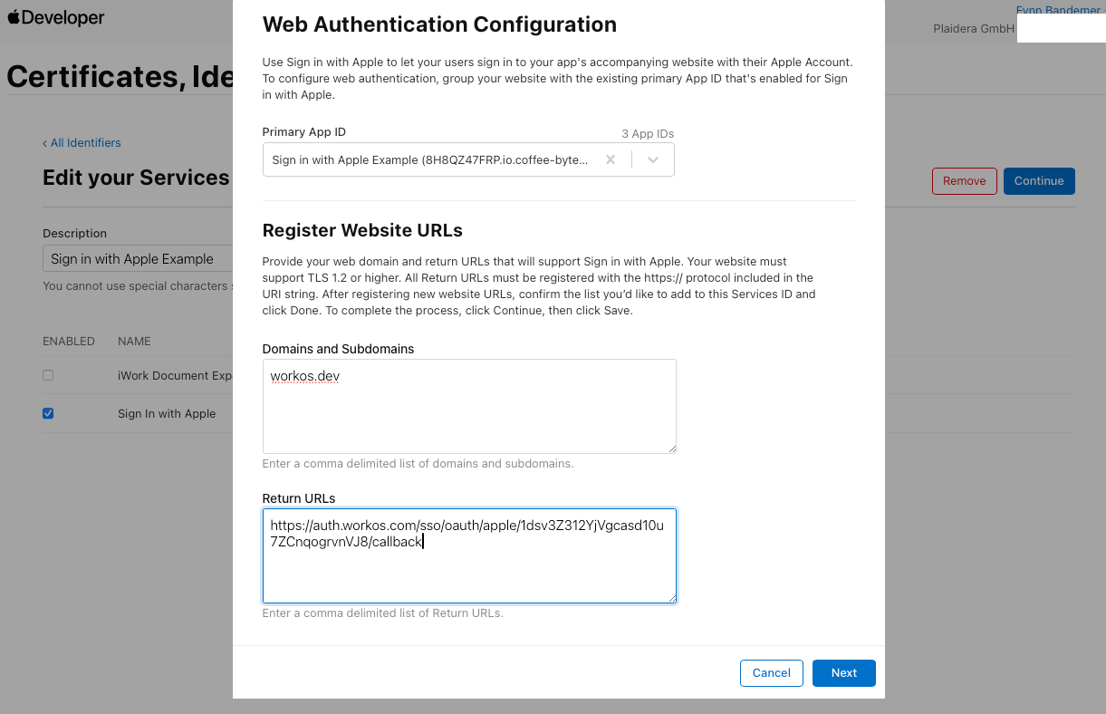 - Mismatched Return URI? Double-check that the Apple Developer settings match WorkOS.