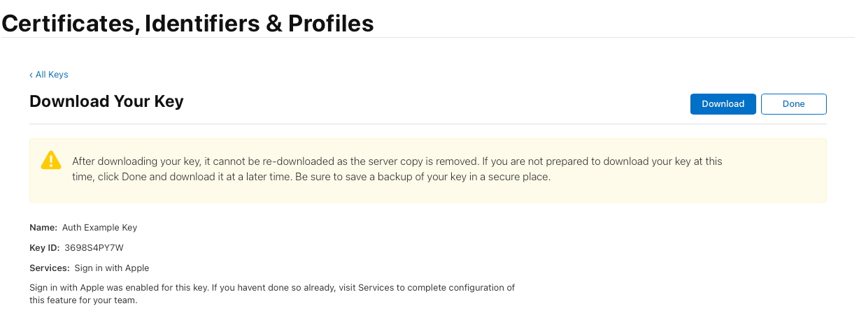 A Private Key is required to securely authenticate your server with Apple.