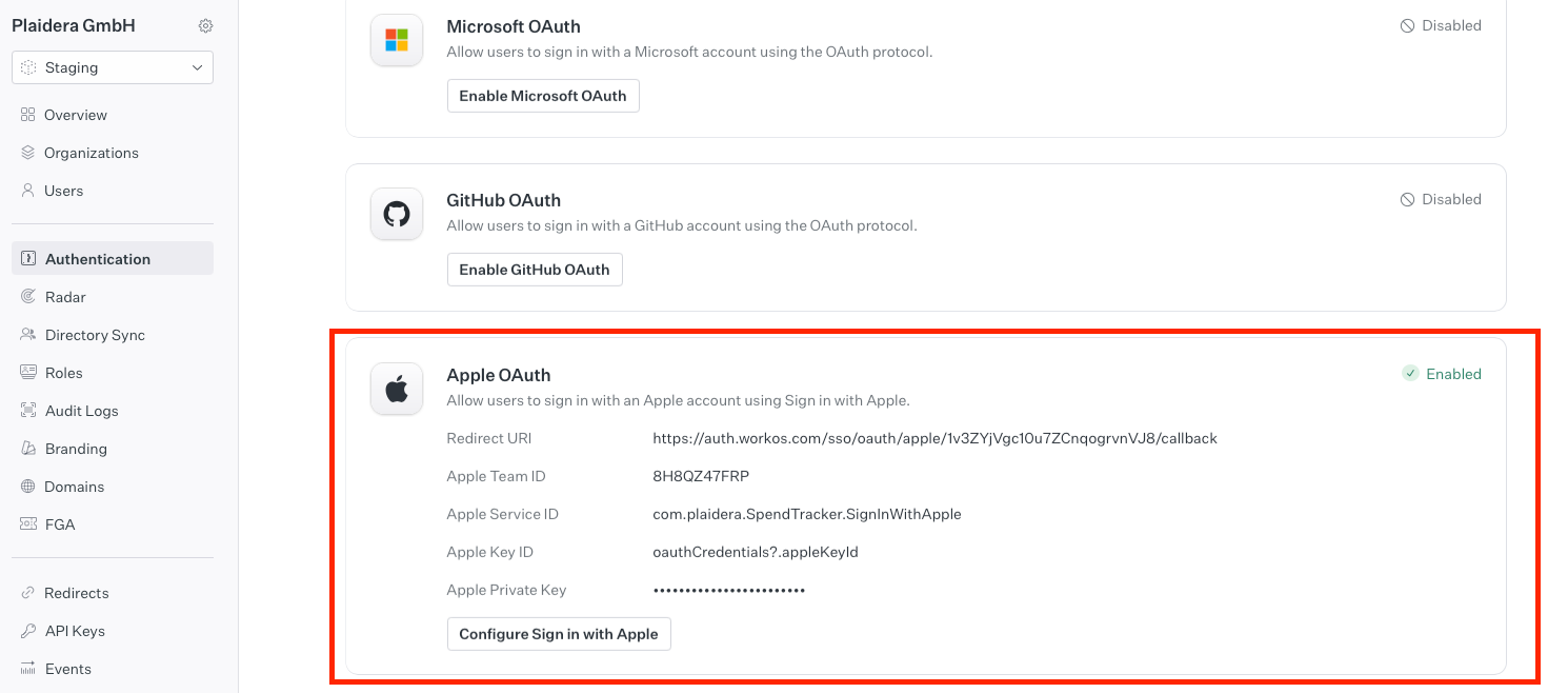 âś… Verify that Sign in with Apple is enabled in WorkOS/Auth0.