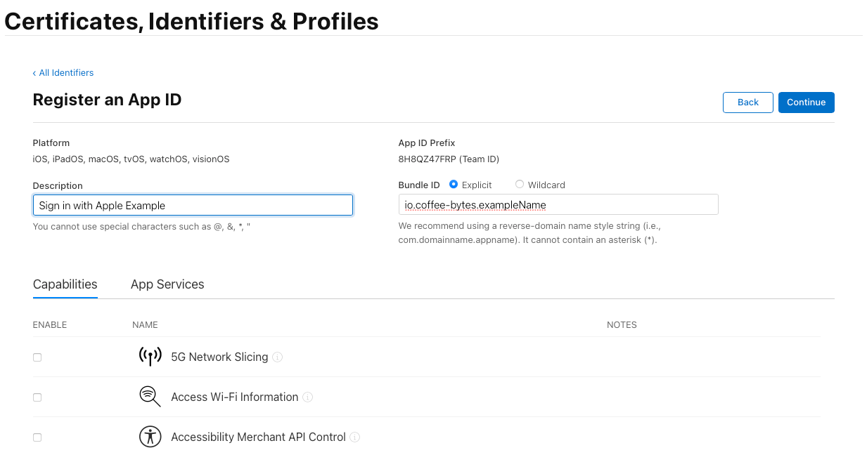 🔹 Why is this needed? The App ID allows Apple to recognize your app and link it to Sign in with Apple.