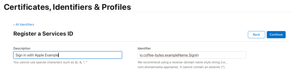 🔹 Why is this needed? The Service ID enables web-based authentication with Apple and links your app to the Apple authentication system.
